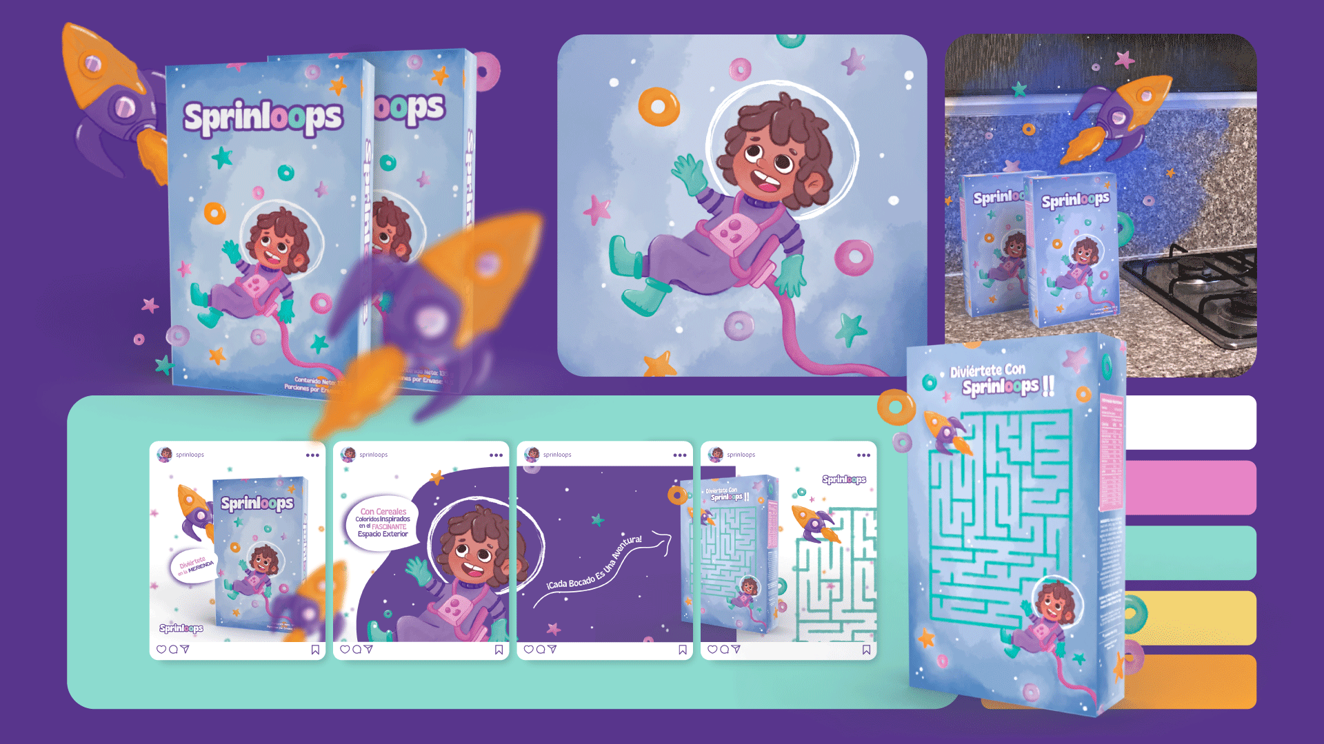 Es una marca de cereales coloridos diseñada para niños y niñas de 6 a 12 años, inspirada en la imaginación y los viajes espaciales. La marca invita a convertir la hora del desayuno en una aventura intergaláctica llena de diversión y exploración.